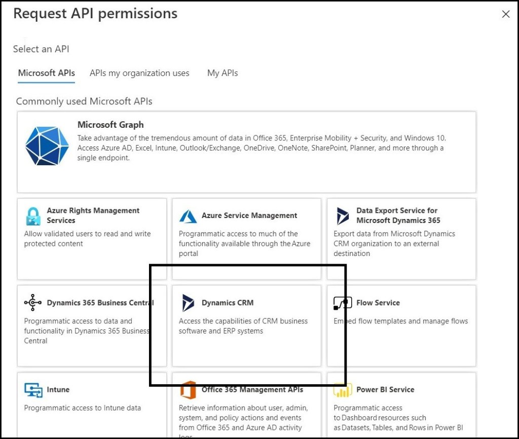 - As you can see, there is only one delegated permission for this API. There are no application permissions. What if I want to manage a solution outside of a user’s context? Refer to the second blog of this series for that use case. For now, let’s just add the “user_impersonation” permission.